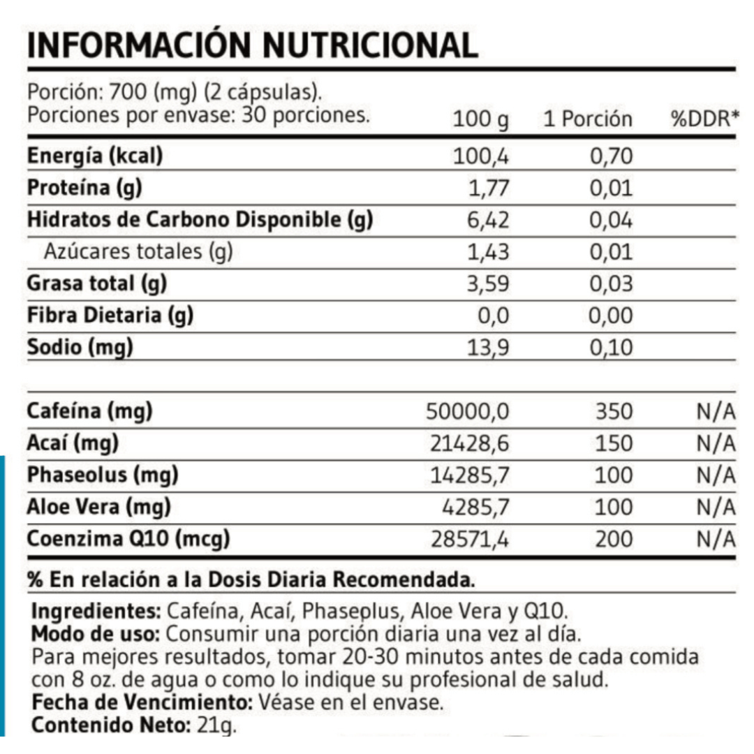Aumenta la energía: proporciona un impulso de energía sostenida mientras quemas grasa.